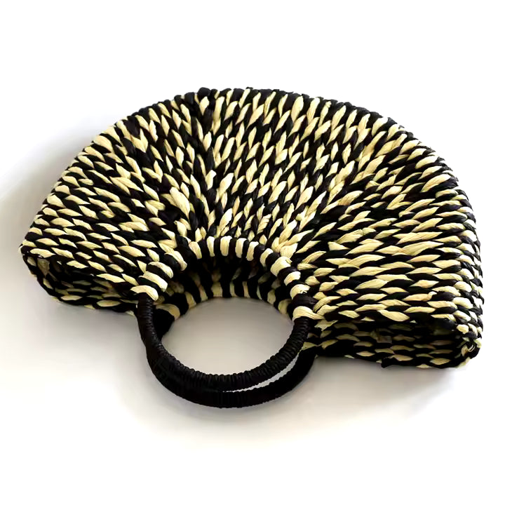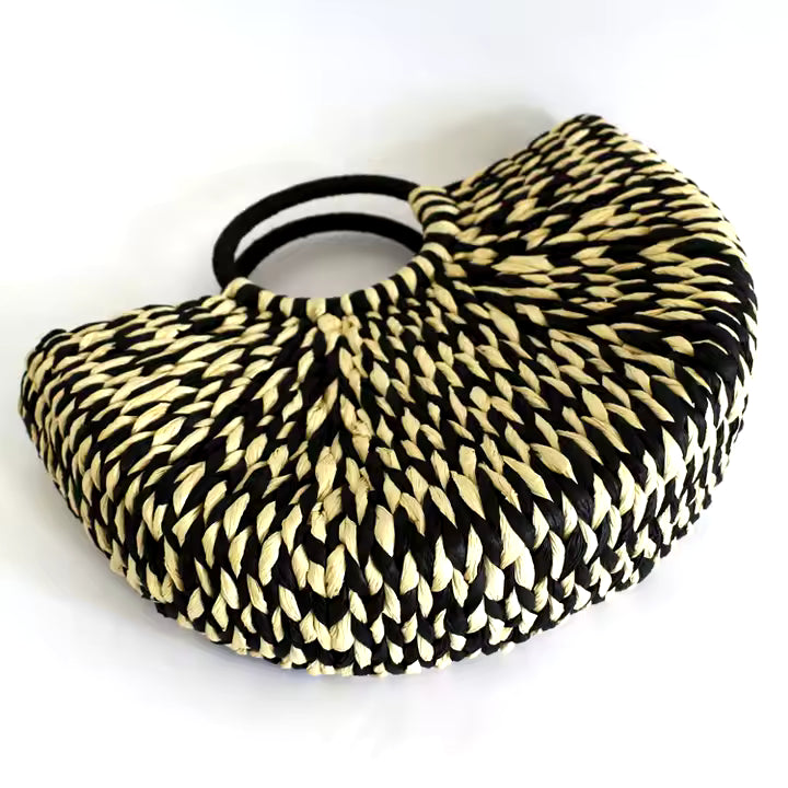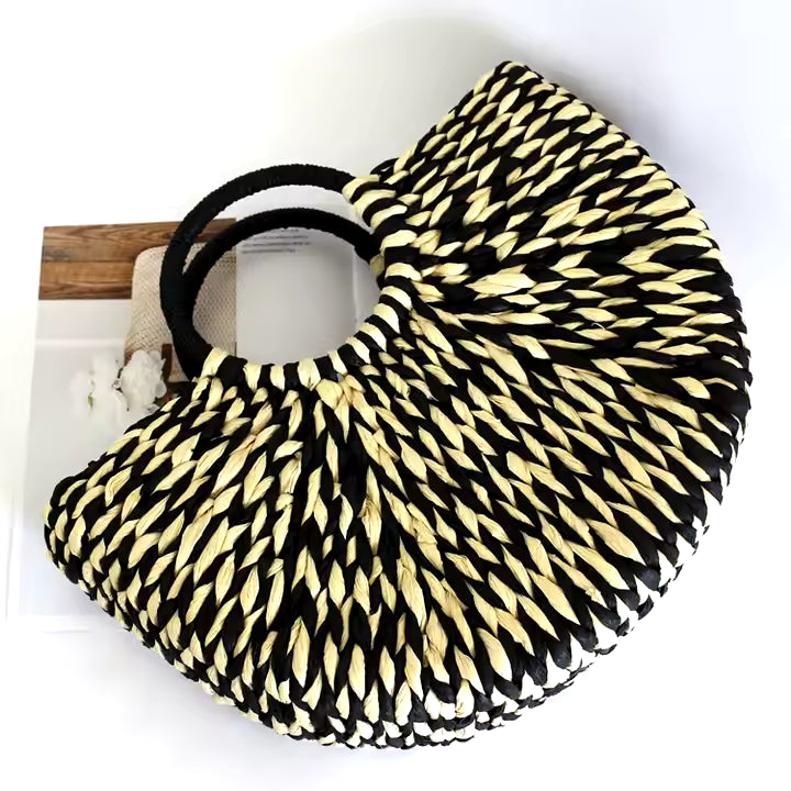 White & Black Paper Straw Beach Tote